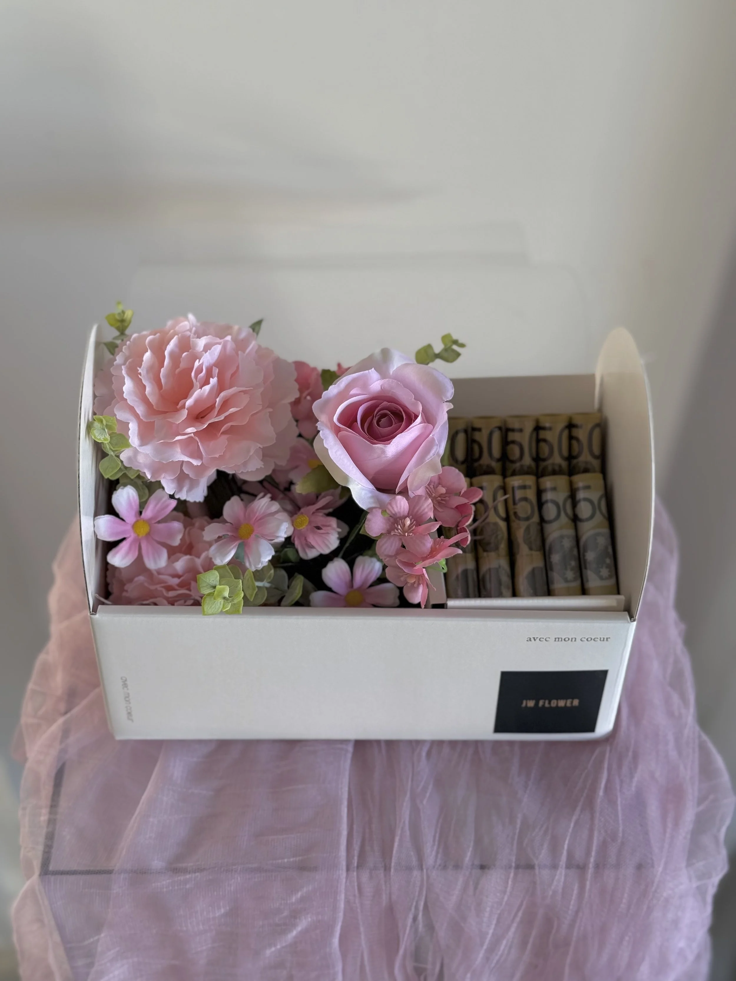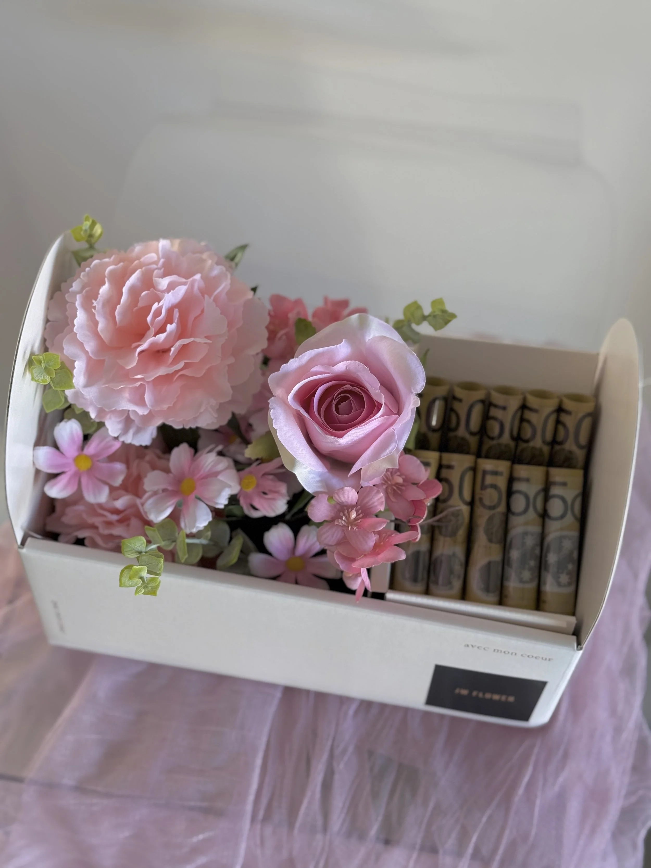 Two gifts in one — The money roll box lets you tuck in cash or a gift card alongside the flowers — a creative and heartfelt presentation she'll love.