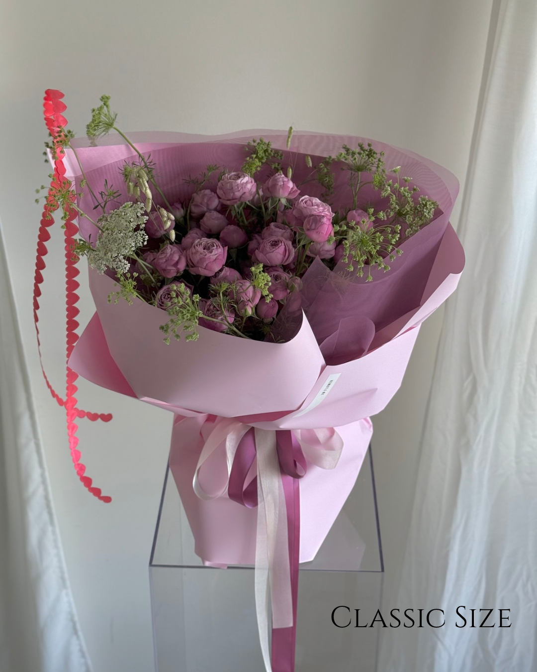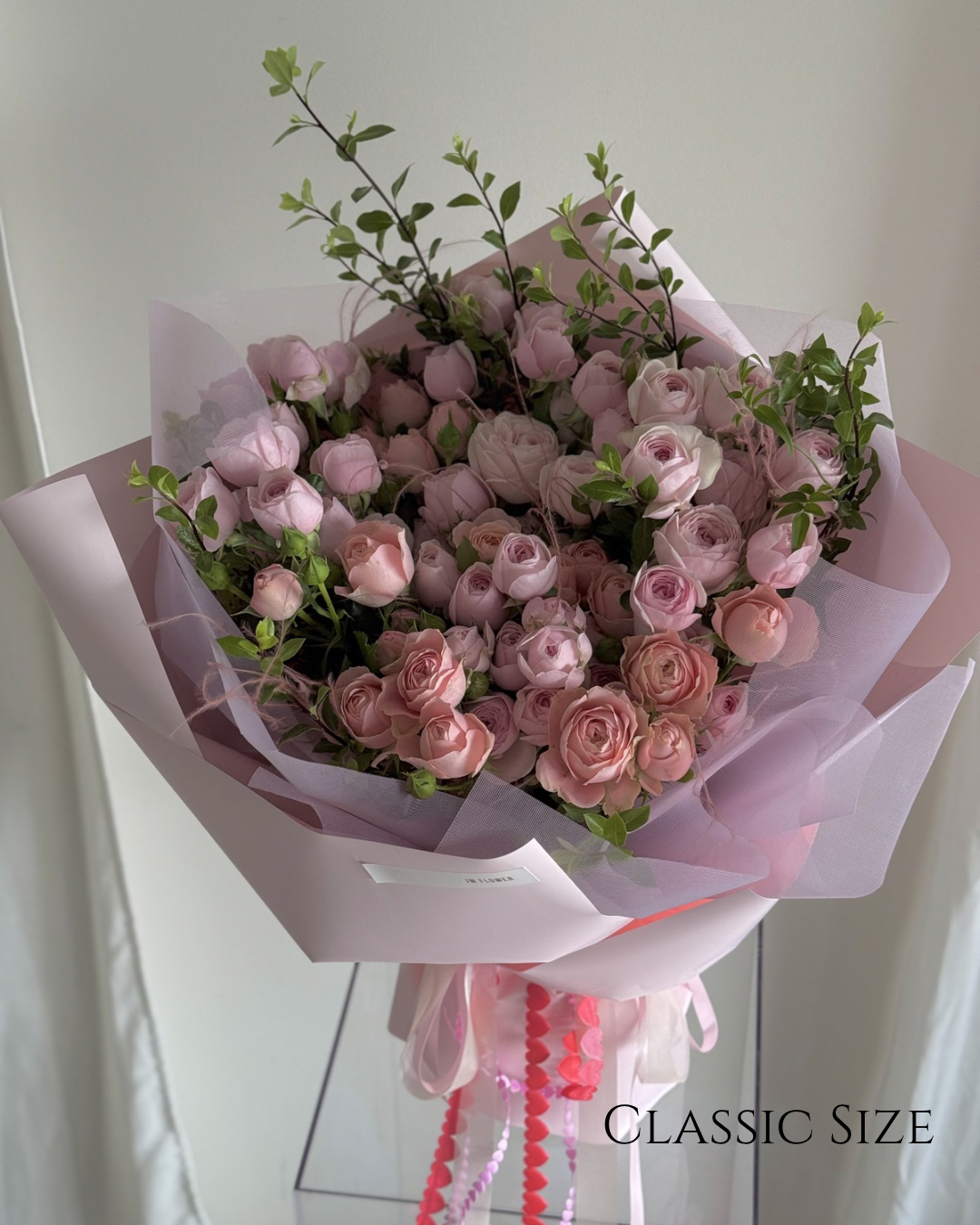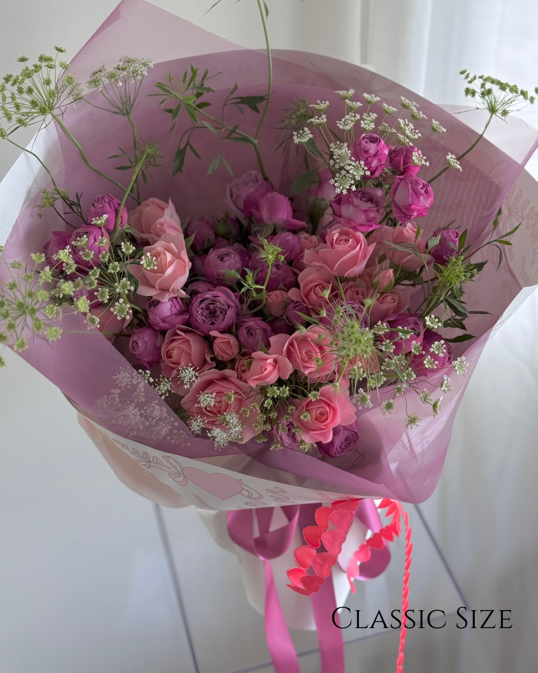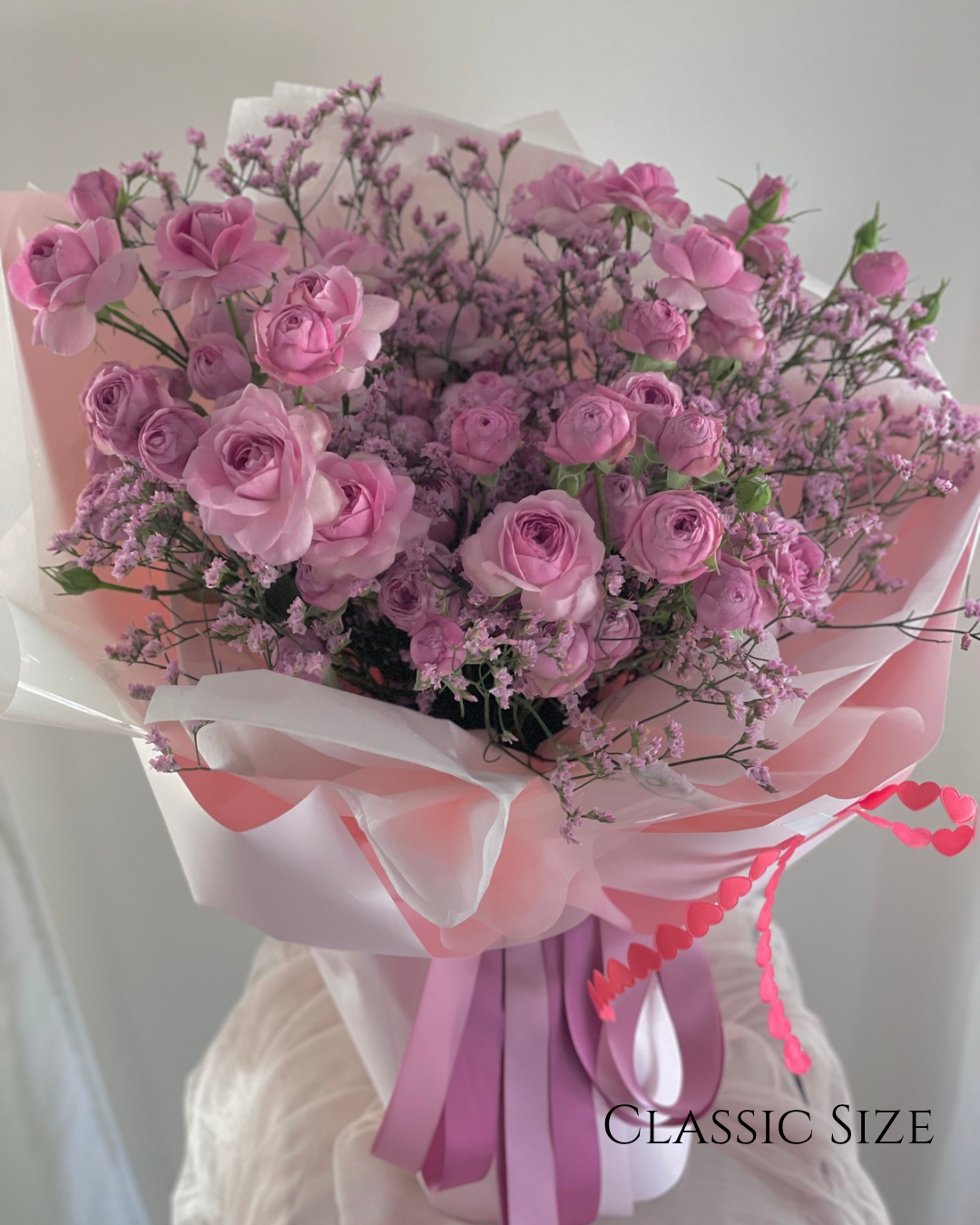 The most popular configuration is the Classic size bouquet.