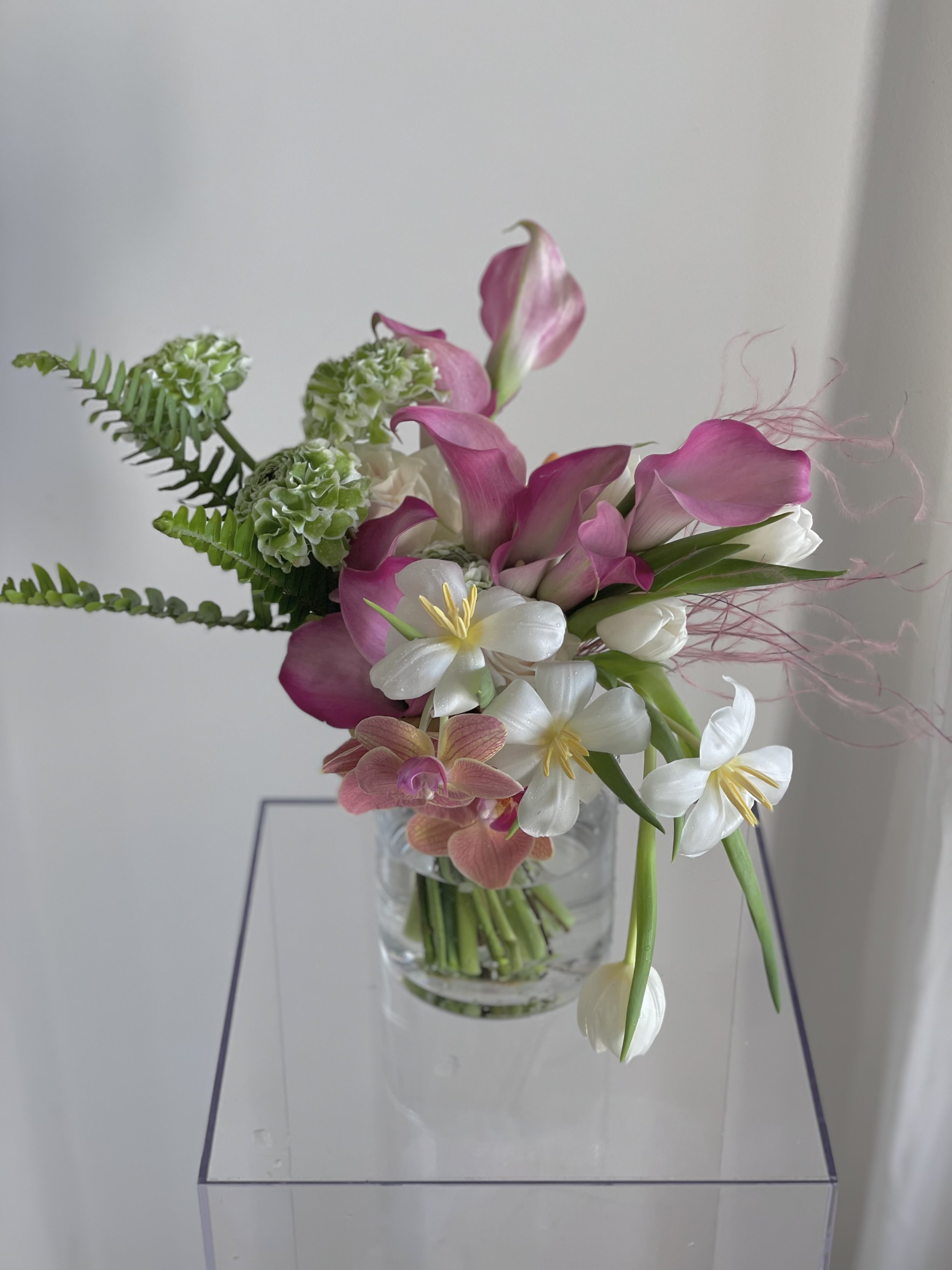 An elevated design with premium flowers and lush greenery. Expertly crafted with higher-end blooms for a sophisticated, luxurious look that photographs beautifully.